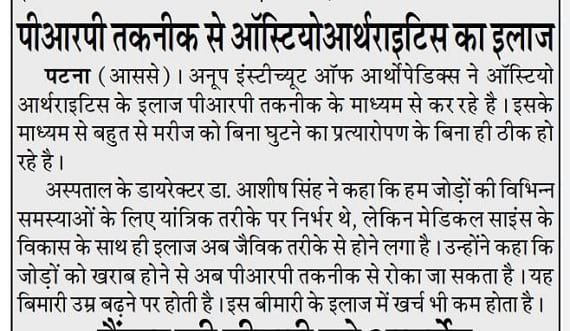A Padma Shri Awardee, Renowned Orthopaedic Surgeon Recognition of the Anup institute of Orthopaedics as being one of the Top hospitals in India for Orthopaedics