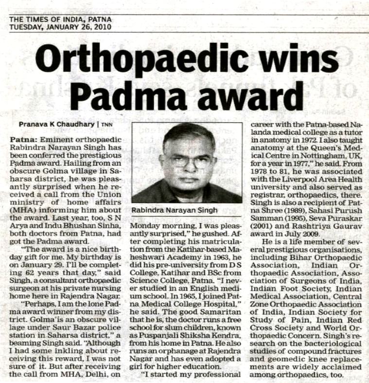 Dr.Ashish Singh was awarded the Most Enterprising Orthopaedic Surgeon of the year by Medgate Today ( Times Group)