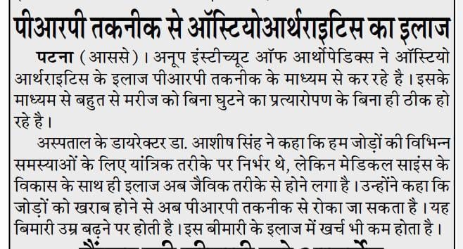 A Padma Shri Awardee, Renowned Orthopaedic Surgeon Recognition of the Anup institute of Orthopaedics as being one of the Top hospitals in India for Orthopaedics