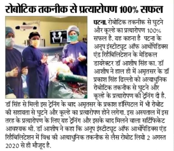 Robotic Joint Replacement Surgery at AIOR performed by Joint replacement department