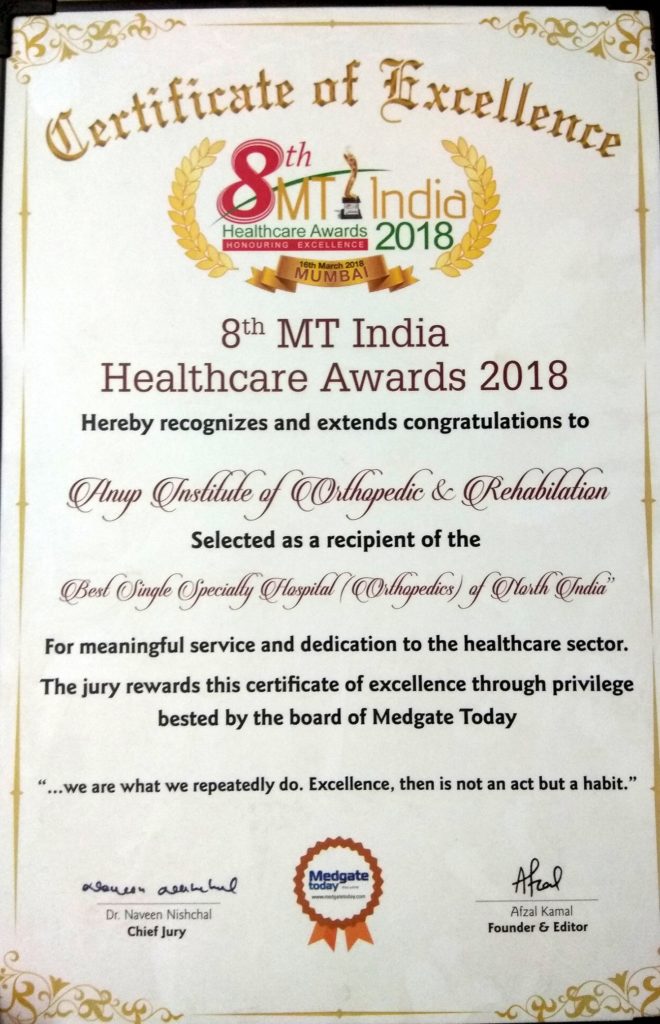 Diplomat of National Board – Anup Institute of Orthopaedics and Rehabilitation was accredited with DNB granted by Ministry of Health and Family welfare.