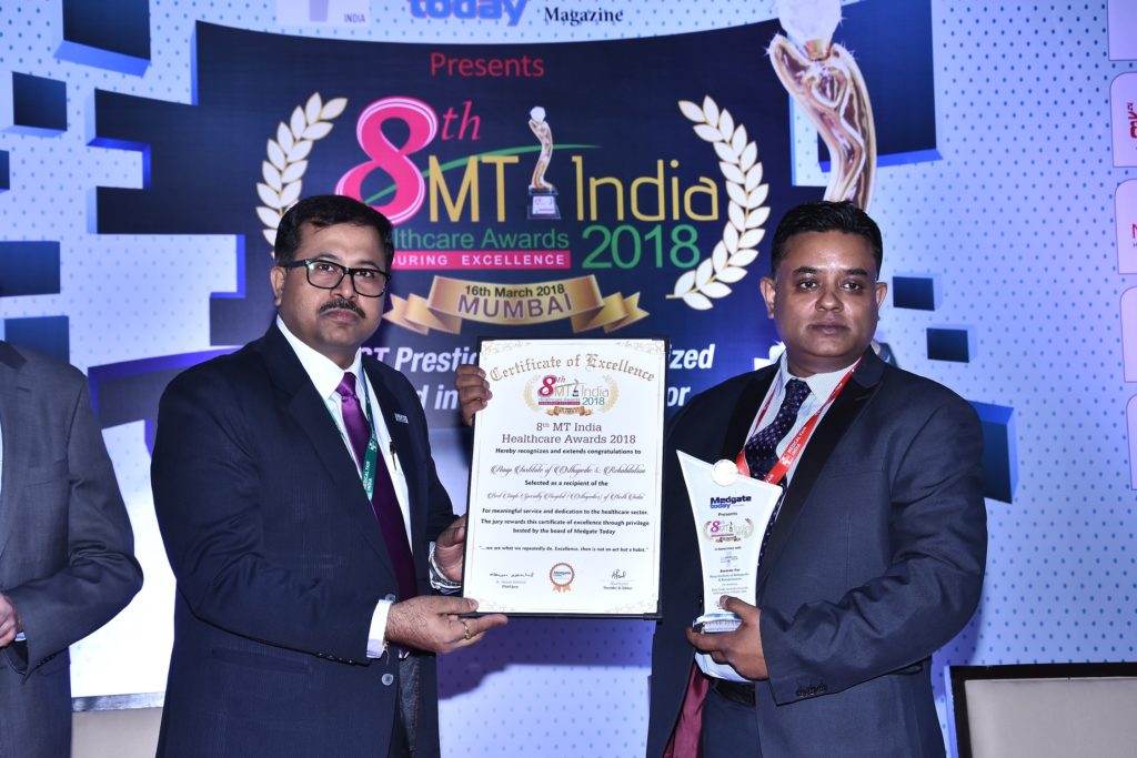 Dr.Ashish Singh was awarded the Most Enterprising Orthopaedic Surgeon of the year by Medgate Today ( Times Group)